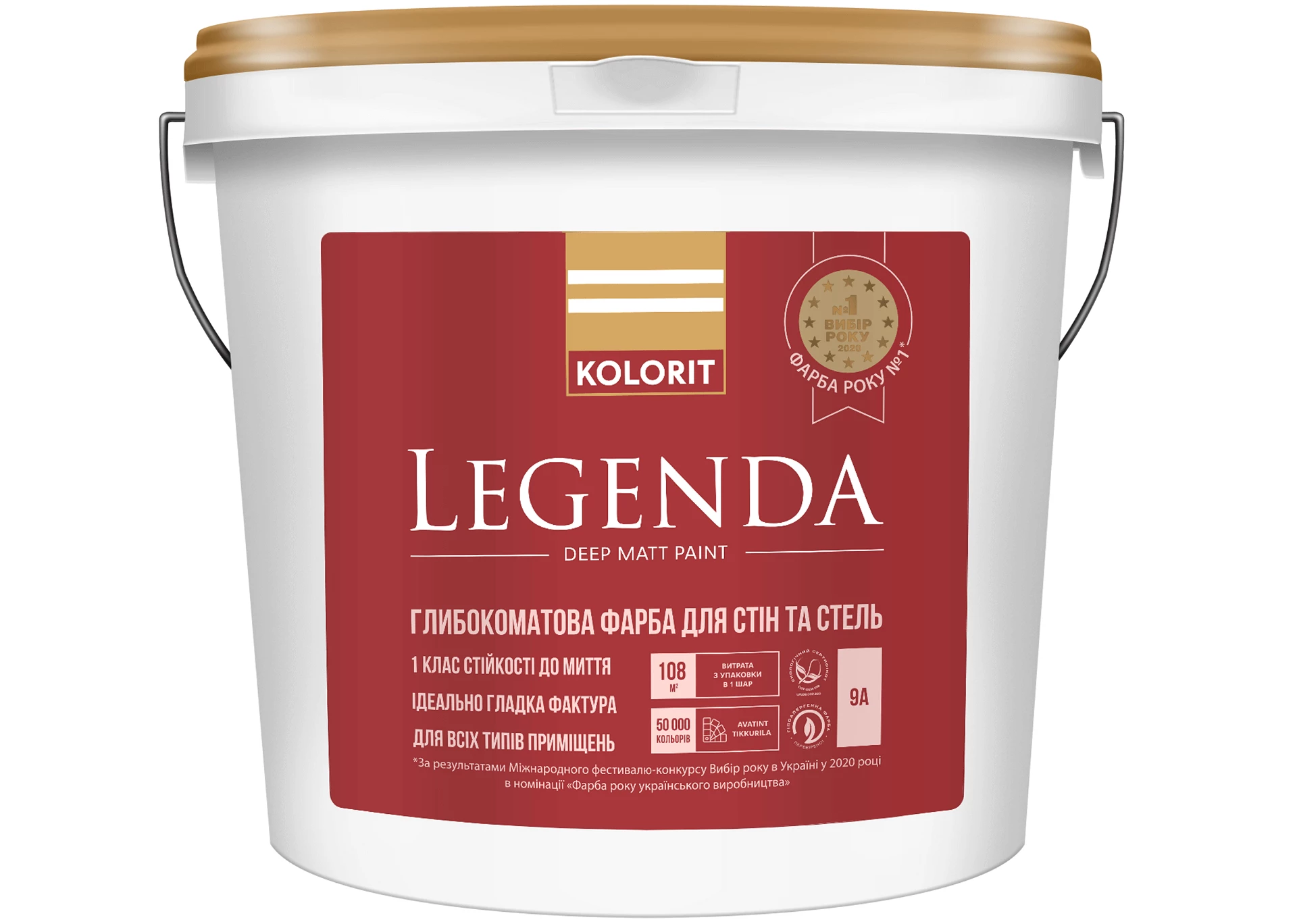 Водоемульсійна фарба глибоко матова KOLORIT LEGENDA база А 9л