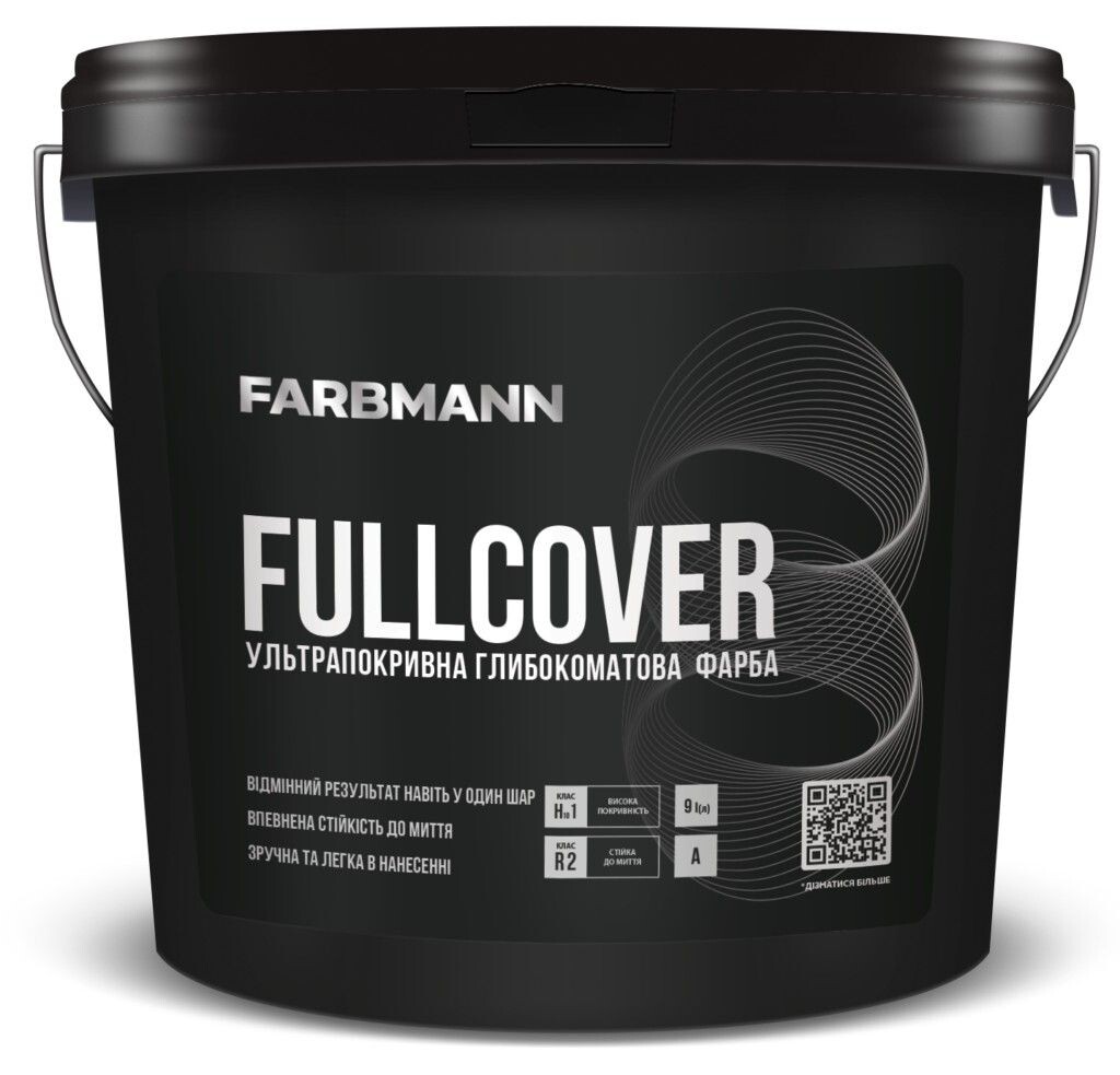 На відміну від звичайних фарб, FARBМANN Fullcover створює рівномірне матове покриття без плям і розводів, швидко висихає та не має різкого запаху, тому підходить для внутрішніх робіт у житлових приміщеннях.