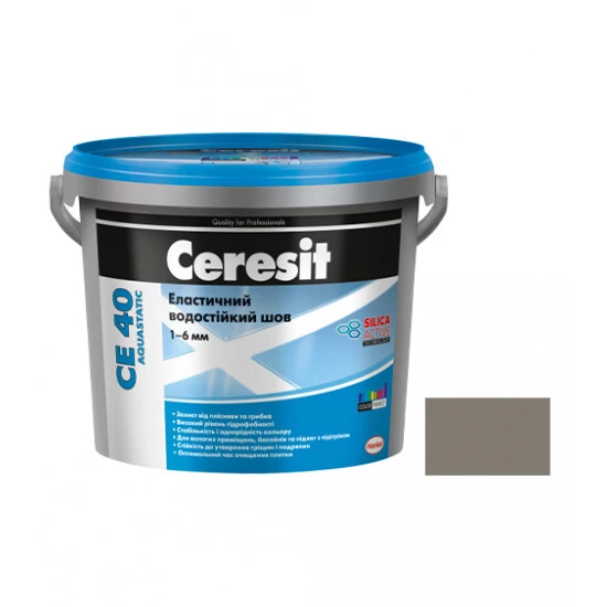 Суміш Церезіт (Ceresit) CE 40 Aquastatic призначена для затирання швів насамперед в приміщеннях з підвищеною вологістю. Також суміш CE 40 використовується на деформованої основи (підлоги, що підігріваються). Спеціальна технологія SILICA ACTIVE надає кольоровим швам CE 40 еластичності, а рецептура Aquastatic завдяки підвищеної гідрофобізації не дозволяє волозі проникати всередину.