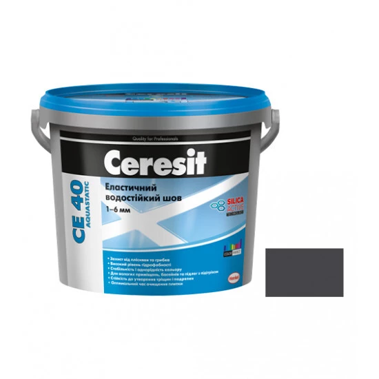 Суміш Церезіт (Ceresit) CE 40 Aquastatic призначена для затирання швів насамперед в приміщеннях з підвищеною вологістю. Також суміш CE 40 використовується на деформованої основи (підлоги, що підігріваються). Спеціальна технологія SILICA ACTIVE надає кольоровим швам CE 40 еластичності, а рецептура Aquastatic завдяки підвищеної гідрофобізації не дозволяє волозі проникати всередину.