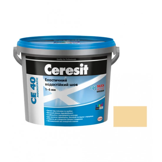 Суміш Церезіт (Ceresit) CE 40 Aquastatic призначена для затирання швів насамперед в приміщеннях з підвищеною вологістю. Також суміш CE 40 використовується на деформованої основи (підлоги, що підігріваються). Спеціальна технологія SILICA ACTIVE надає кольоровим швам CE 40 еластичності, а рецептура Aquastatic завдяки підвищеної гідрофобізації не дозволяє волозі проникати всередину.